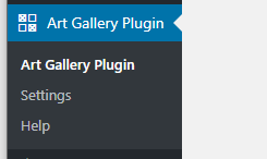 Navigate to the Art Gallery Plugin Admin Menu section in the backend of WordPress.