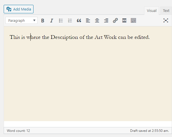 Price: The Price is displayed with whichever Currency Units were selected in Art Gallery Plugin’s Settings. Only numeric values should be entered in the Price field.