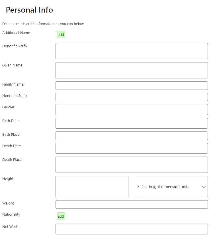 - Artists definitions in Art Gallery Plugin adhere to the official schema for People : https://schema.org/Person