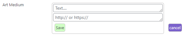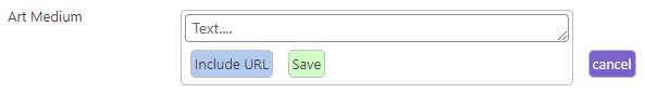 (Offer) URL: If a URL is entered into the URL field, the URL is not displayed in the output of the Art Work webpage. Instead the URL is used to make the Availability Text that’s displayed a link.